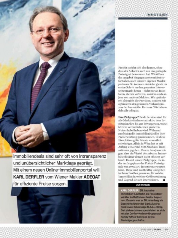„Mit dem Einstieg von Herbert Logar ist es uns gelungen, einen der führenden Immobilienexperten des Landes und einen der erfahrensten Transaktionsmanager Österreichs für ADEQAT zu gewinnen. Die jahrzehntelange Markt- und Transaktionserfahrung unseres neuen Partners ist ein enormer Gewinn für ADEQAT und unsere Kunden“, so die beiden Unternehmensgründer Karl Derfler und Franz Helbich.